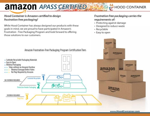 Hood Container is now Amazon certified to design frustration free packaging! Now listed on their website, Hood Container can offer frustration free packaging to those looking to meet those qualifications. With the goal of lowering costs, enhancing sustainability efforts, decreasing environmental impact and enhancing customer experience, Amazon has made this a growing need. Frustration free packaging carries the requirements of protecting against damage, designed to reduce waste, recyclable, and easy to open. While Hood Container has always designed our products with these goals in mind, we are proud to have participated in Amazon’s Frustration – Free Packaging Program and look forward to offering those solutions to our customers.